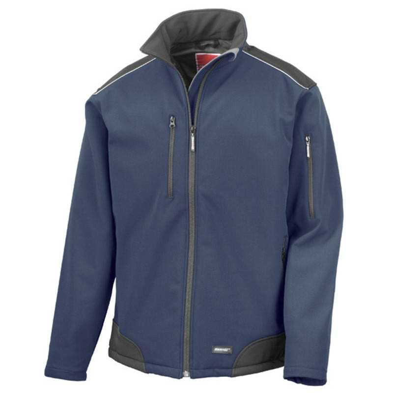 Reinforced Softshell Jacket.Made of a three-layered softshell fabric (a water-repellent outer layer, a breathable mid-layer and micro fleece inner layer) providing windproof and water-repellent properties, as well as excellent thermal insulation, also includes Ripstop fabric reinforcements in high-wear areas for added durability.Stand-up double layer collar with inner sherpa lining and full-zip front closure for warmth and comfort.Straight-cut waist with adjustable elastic drawstring and stopper, elasticated cuffs for a better fit and added comfort. Two slanted waist pockets and a vertical left chest pocket, all zippered, for a secure and convenient storage.Includes an inside back zip for easy marking with different methods: embroidery, stitching and anti-sublimation heat-stickers.Ideal for adventure sports and as workwear.