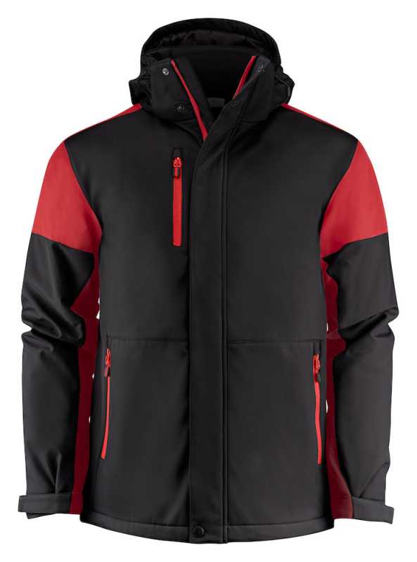 3vrstvový softshell s membránou, vodeodolný, vetruodolný a priedušný materiál, rovný strih s bočnými švami, celozapínací reverzný špirálový zips s krytkou brady, lemy rukávov nastaviteľné suchým zipsom, dolný lem na stiahnutie elastickou šnúrkou, vrecká s