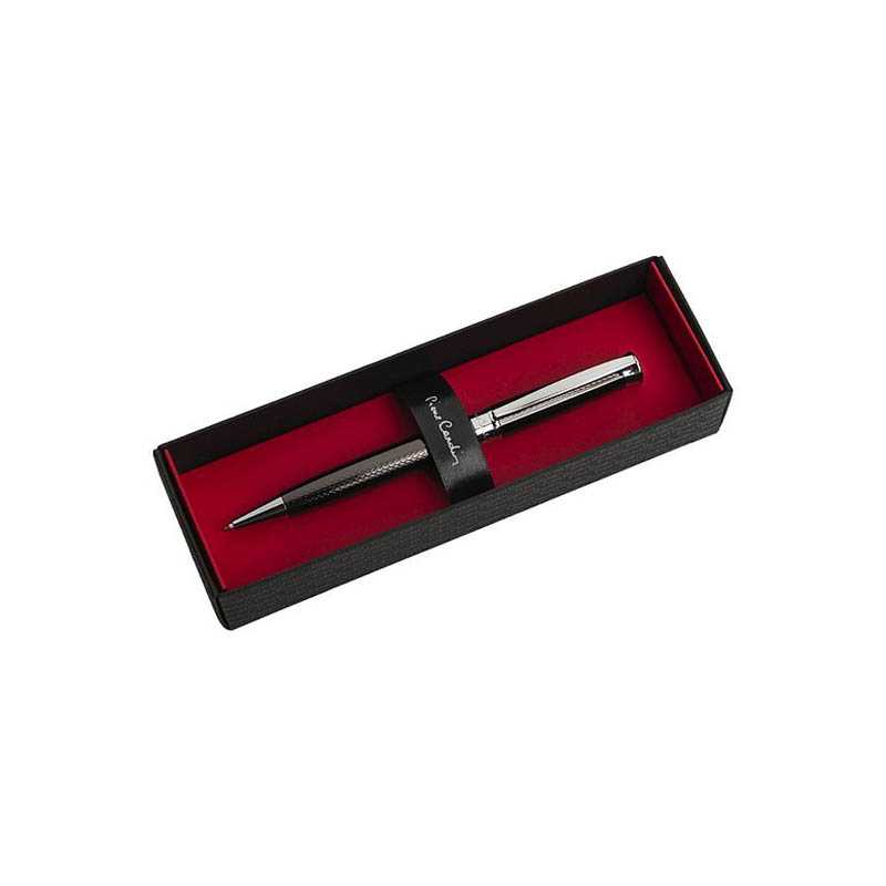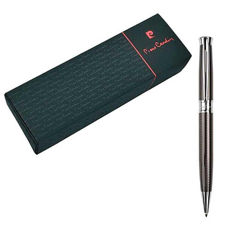 Kuličkové pero značky Pierre Cardin. Pero má velmi elegantní tvar, jemné rytí po celém provrchu, otočný mechanismus a obsahuje kvalitní náplň v modré barvě s hrotem 1 mm. Dodáváno s náhradní černou náplní v luxusní krabičce s certifikátem pravosti. Rozměry: kuličkové pero 1,2 × 14 cm; balení 17,5 × 3,5 × 5,5 cm. Uhlíková stopa: gCO2 e239.