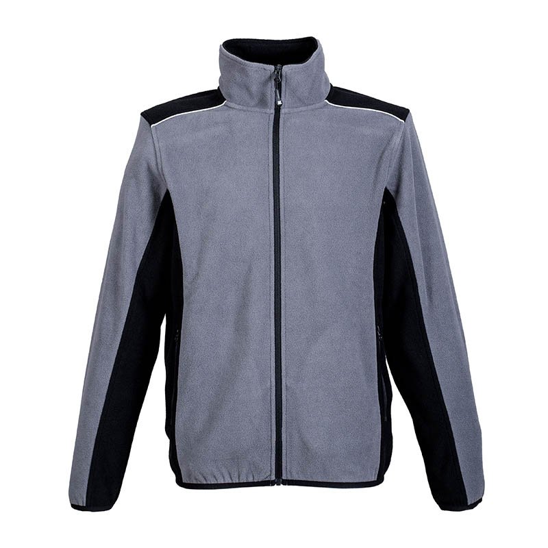 NOVINKA 2025. Bicolor anti-pilling fleece - Long zip - Hips, shoulders, upper back and inner arms in contrast - Front reflective piping on the shoulders and rear on the back - Two pockets with zip - Elasticated cuffs and hem