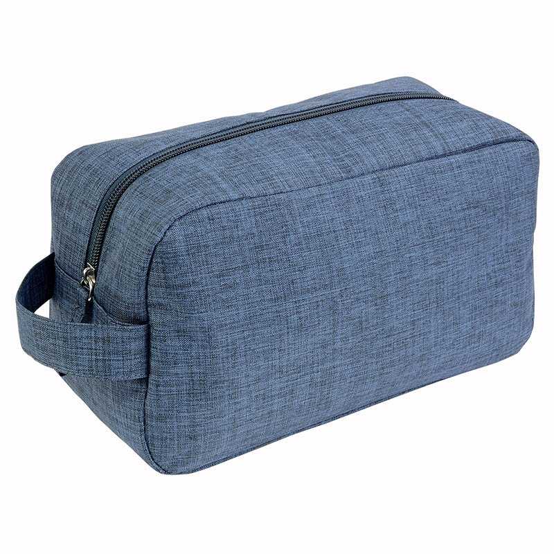 Toaletná taška s klinom z bavlneného plátna laminovaného polyuretánom.Zips a sťahovanie v rovnakej farbe ako taška.Certifikát STANDARD 100 podľa OEKO-TEX® č. CQ 1164/1, IFTH.