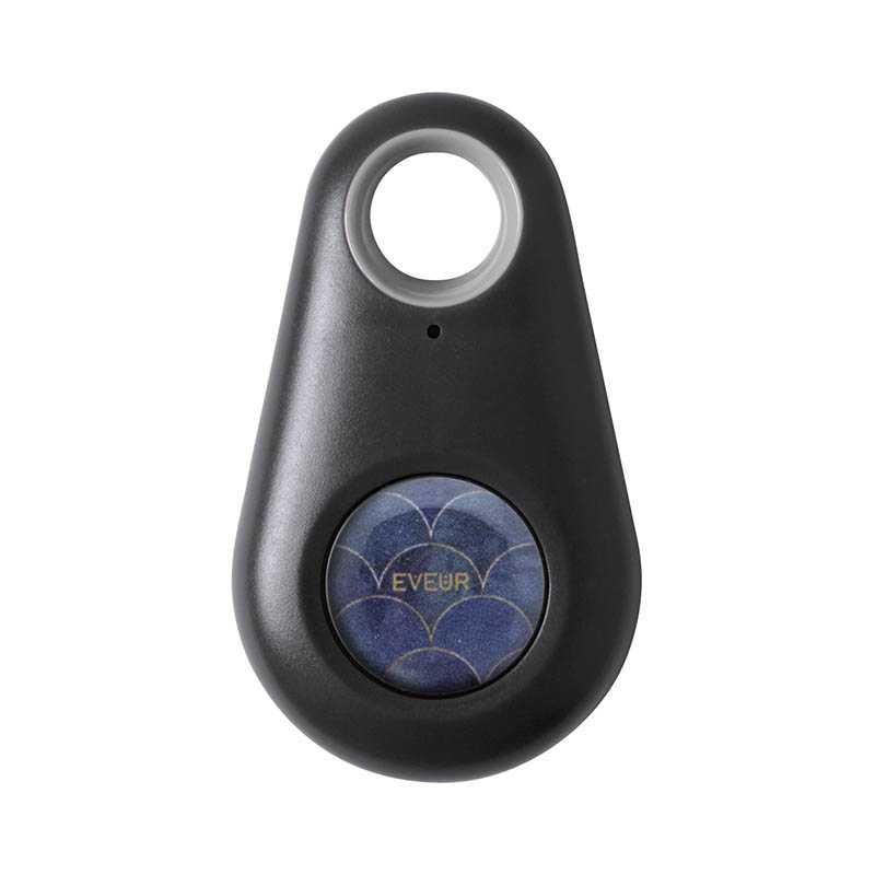 ABS tracker (incl. separate string) featuring wireless technology to track lost belongings. It can also be used as a remote selfie shutter. You can ping your exact location to relocate where you parked your car. Uses app.