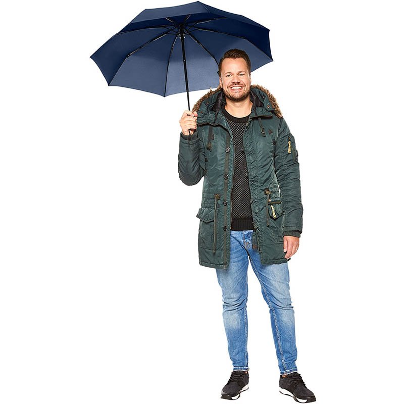 Convenient automatic open/close function for quick opening and closing, high-quality Windproof PLUS system for maximum frame flexibility in stormy conditions, comfortable Soft-Feel handle with integrated push-button, elastic loop and promotional labelling option