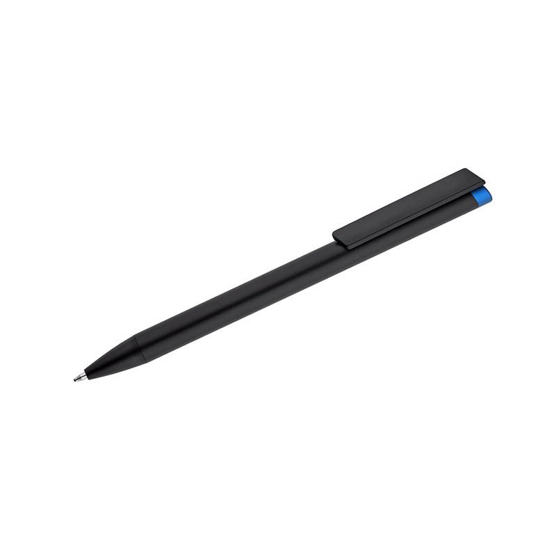 ALI je výjimečné pero, které umožňuje branding v barvě blížící se odstínu části zakončení pera nebo neobyčejného dvoubarevného gravíru - v barvě blížící se odstínu části zakončení pera nebo bílé (odstín aluminium). Černé kovové těleso a černé konečné provedení jsou perfektním pozadím pro barevné gravírování. Automatická propiska. Modrá náplň typu X20 s šířkou hrotu 1.0 mm.