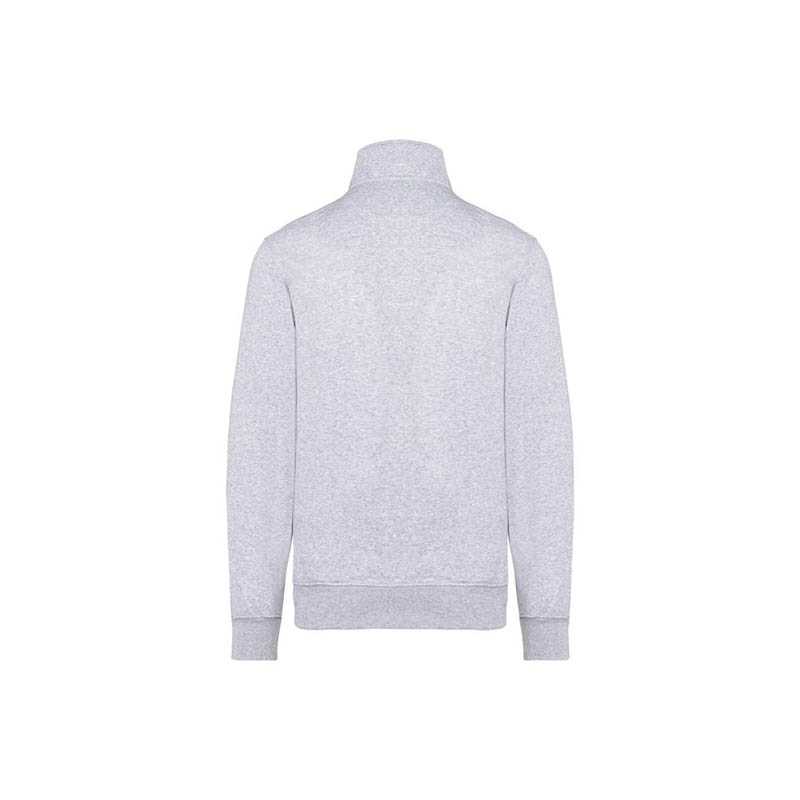 80% cotton/20% polyester. LSF (Low Shrinkage Fleece: pre-shrunk fleece) treatment. 3-yarn brushed fleece in combed cotton. Slim fit. Straight sleeves. High neck. Matching plastic zip fastening. 2 zipped and piped side pockets. Half-moon finish at the neckline to facilitate decoration access inside the neckline. 1x1 ribbed cuffs and hem. Tear-away brand label. Certified STANDARD 100 by OEKO-TEX; CQ1007/7, IFTH.