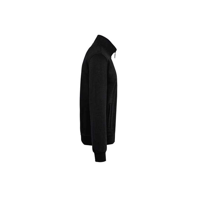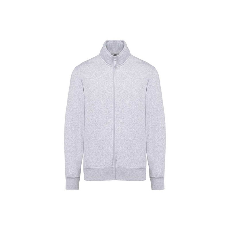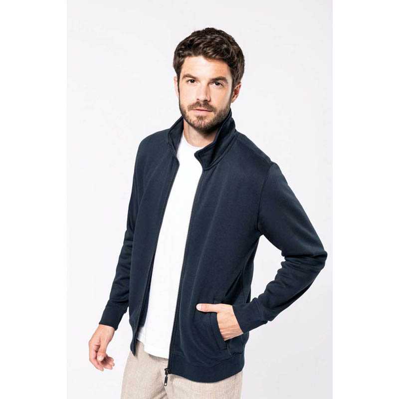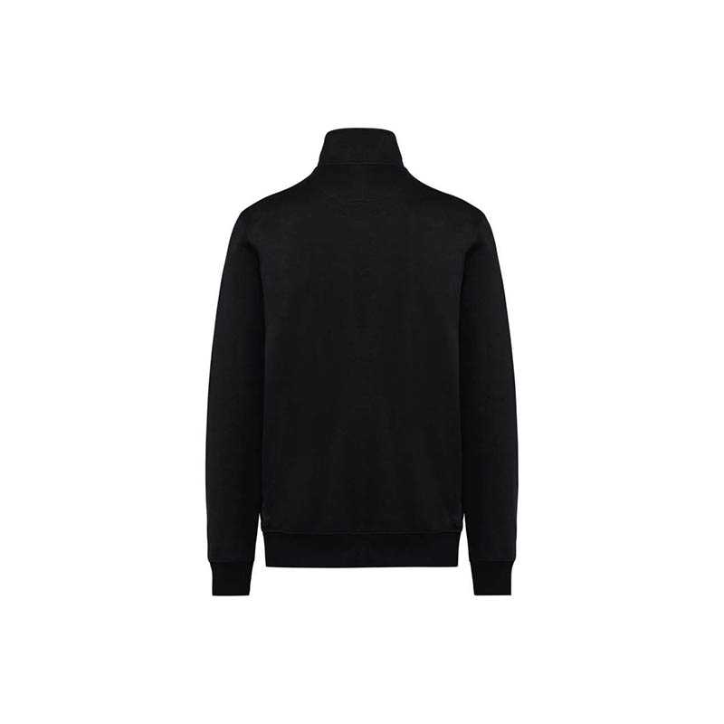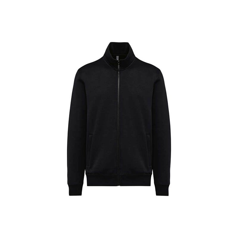 80% cotton/20% polyester. LSF (Low Shrinkage Fleece: pre-shrunk fleece) treatment. 3-yarn brushed fleece in combed cotton. Slim fit. Straight sleeves. High neck. Matching plastic zip fastening. 2 zipped and piped side pockets. Half-moon finish at the neckline to facilitate decoration access inside the neckline. 1x1 ribbed cuffs and hem. Tear-away brand label. Certified STANDARD 100 by OEKO-TEX; CQ1007/7, IFTH.