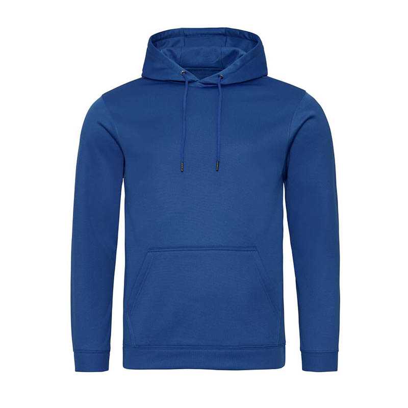 100 % polyester.Štandardný strih.Klokanie vrecko.Okrúhle sťahovacie šnúrky.Kapucňa z trojpanelovej dvojitej látky.Vnútorný kartáčovaný flís.Vlastné textilné manžety a lem.Detail prešívania dvojitým prešívaním.Odtŕhací štítok.
