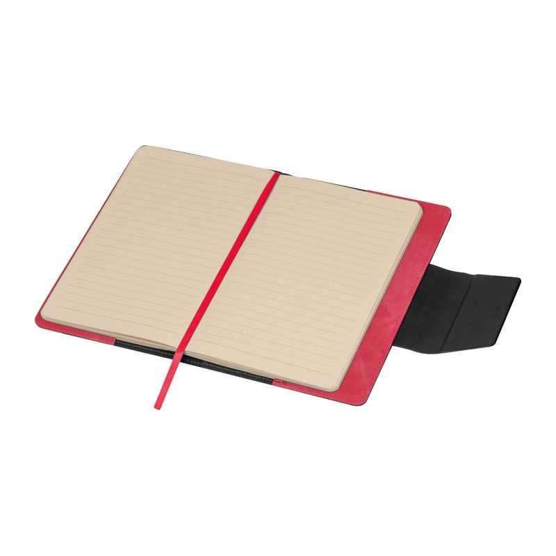 Stylový zápisník VITAL B5 s barevnou gumou z PU ekokůže. Zápisník obsahuje 80 ecru listů s oranžovými linkami.