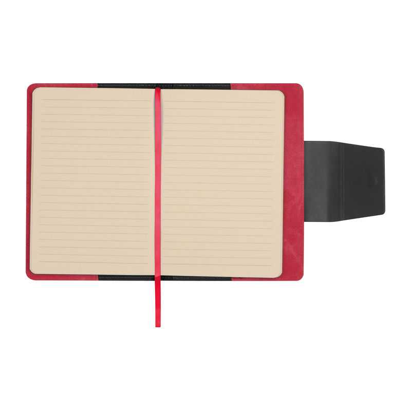 A5 zápisník z recyklovaného PU s magnetickým uzáverom a elastickou slučkou na pero. Linkovaný papier z cukrovej trstiny, 80 listov (160 strán). Obsahuje vyberateľný písací blok pre dodatočné pohodlie.