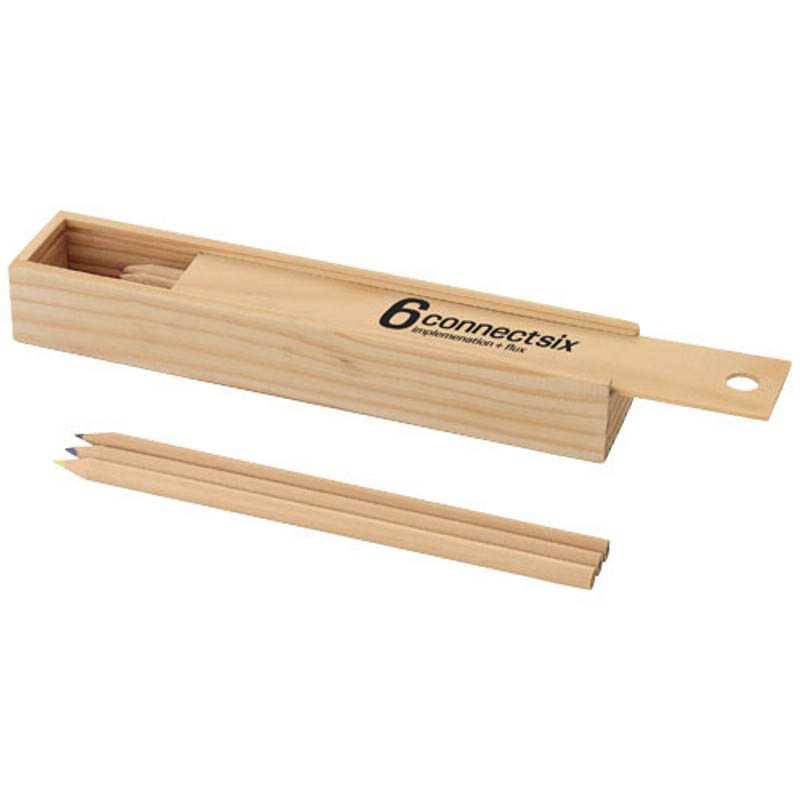 12 barevných pastelek v dřevěné krabičce s vysouvacím víčkem, které lze ze zadní strany použít jako pravítko. Reklamní potisk nelze provést na komponentech.