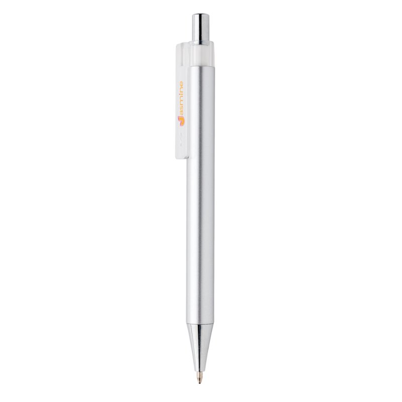 Prostý pero vyrobené z hliníku, ozdobené širokými prsteny. Logo bude vyryté.