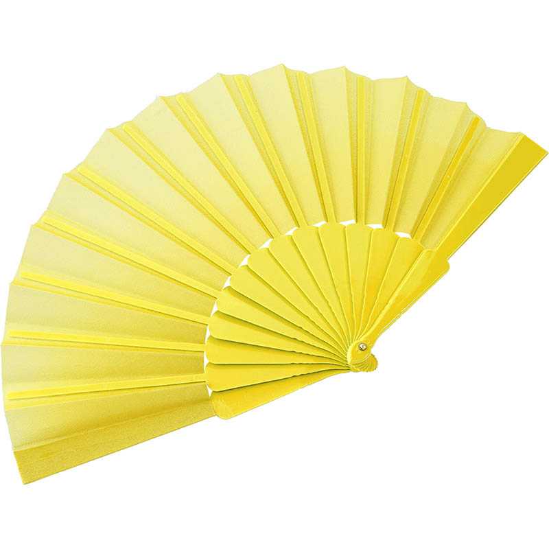 NOVINKA 2025. Rainbow fan with multicoloured fabric and white RPET ribs. A fan to be proud of, with the RPET distinctive injected in mold. Presented in an individual white box with window.