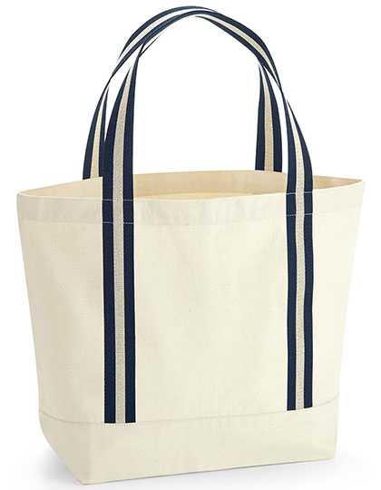 Plátno z organické bavlny . Prémiová těžká tkanina . Měkká bavlněná pruhovaná ucha z popruhoviny . Lze nosit v ruce nebo přes rameno . Délka ucha: 56 cm . Objem: 19 litrů . Dodávka bez dekorace/obsahu