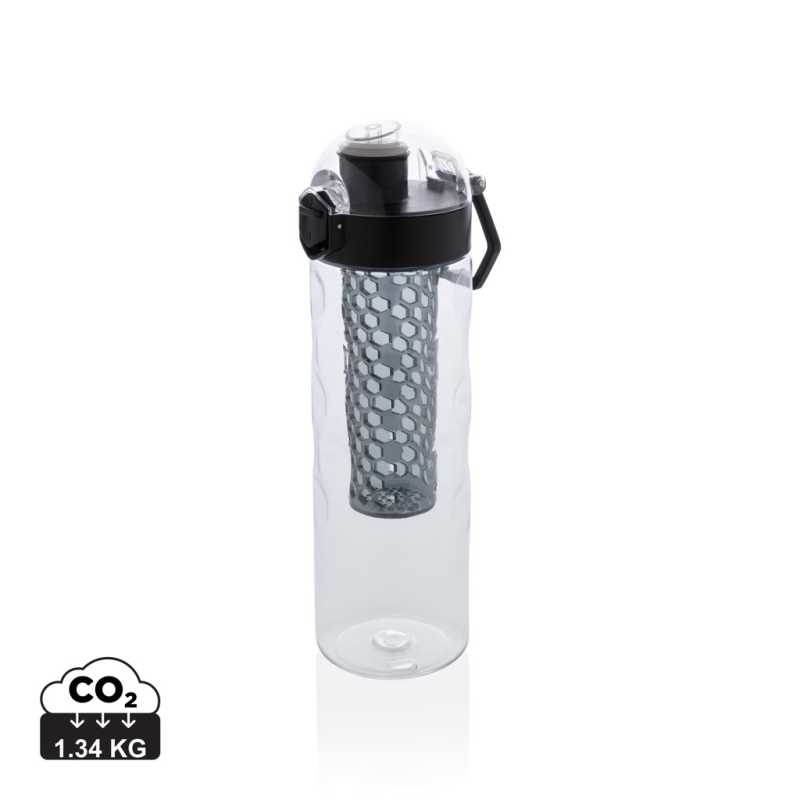 Praktická fľaša z odolného moderného tritanu s dizajnovými prvkami medových plástov pre pohodlné pitie jednou rukou. Otváranie viečka pomocou uzamykateľného mechanizmu na stlačenie, chrániace proti náhodnému vyliatiu. Vrátane infuseru pre zdravé osvieženie nápojov ovocím a plastového pútka pre nosenie. BPA free, neabsorbuje pachy. Objem: 700ml. Registrovaný dizajn®