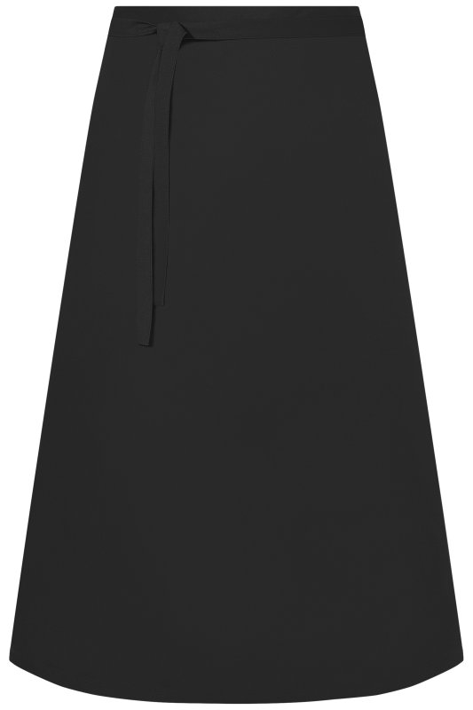Dlouhá "bistro" zástěraOdolná kombinace bavlny a polyesteruZavazovací šňůra po celé délce zástěryRozměry: šířka 100 cm, délka 75 cmPraní na 60°C, možno sušit v sušičce