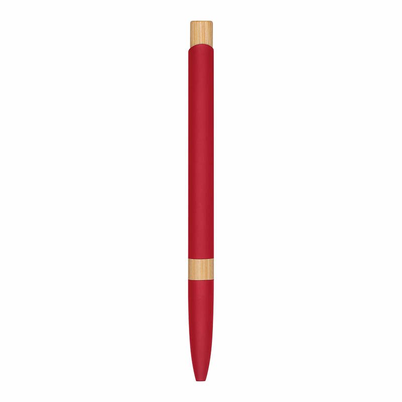 Aluminium ballpoint pen BAMBOO SYMPHONY: matt metal barrel, made of recycled aluminium, bamboo ring in grip area and bamboo push-button, pressure mechanism, large refill with blue ink