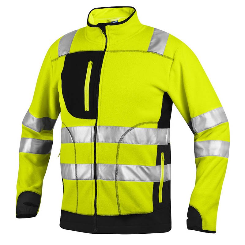 Fleece jacket with full zip at front all the way up to collar. Breast- and side pockets with zipper. Reinforcements in softshell at cuffs, side pockets and jacket hem for increased durability. Adjustable waist with drawstring. Pre-bent sleeves for increased comfort. Thumb grip at sleeve ends. Material: 100% Polyester Weight: 290 g/m2 Size: XS-4XL