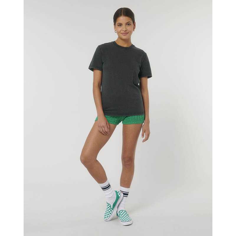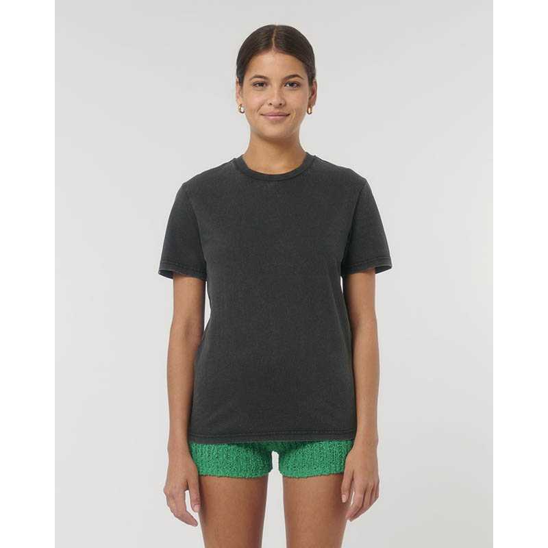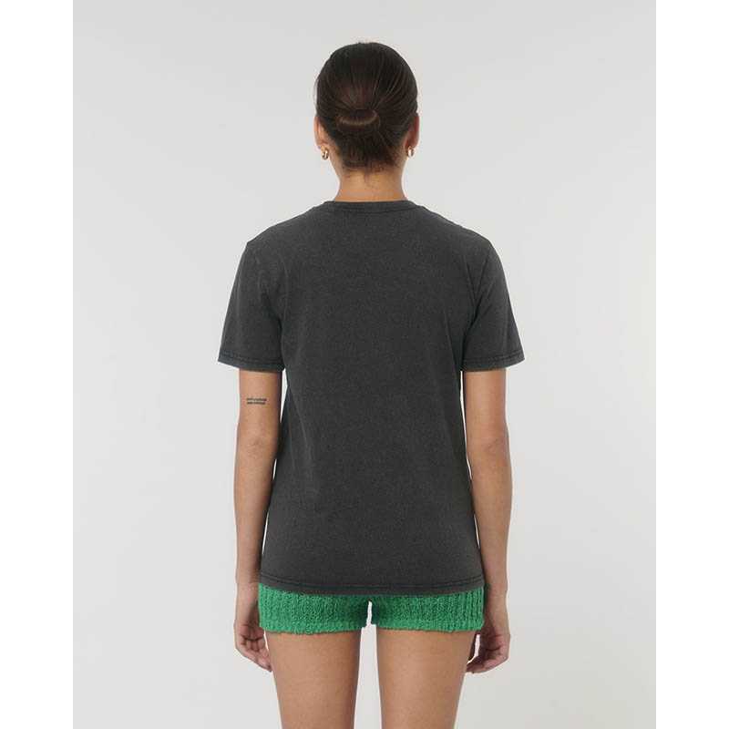 NOVINKA 2025. Set-in sleeve 1x1 rib at neck collar Inside back neck tape in self fabric Twin needle topstitch at sleeve cuff and hem Slight shading on seams to give washed look. Garment dyed product, each garment may vary in appearance, colour may bleed