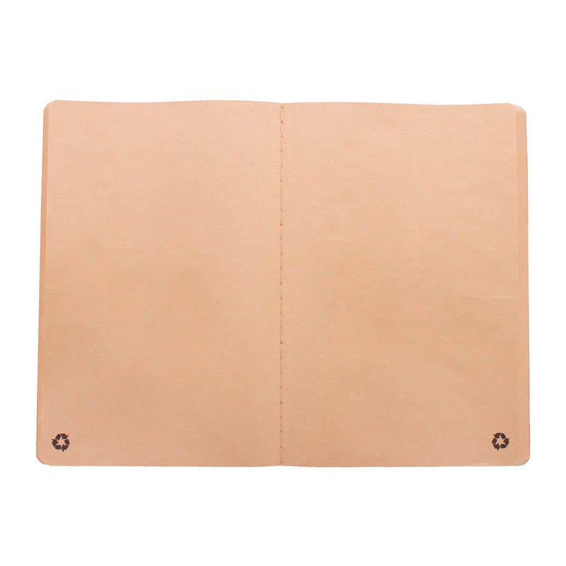 Blok A6 s deskami z recyklovaného papíru, šitý a 60 prázdnými listy z recyklovaného kraftového papíru.