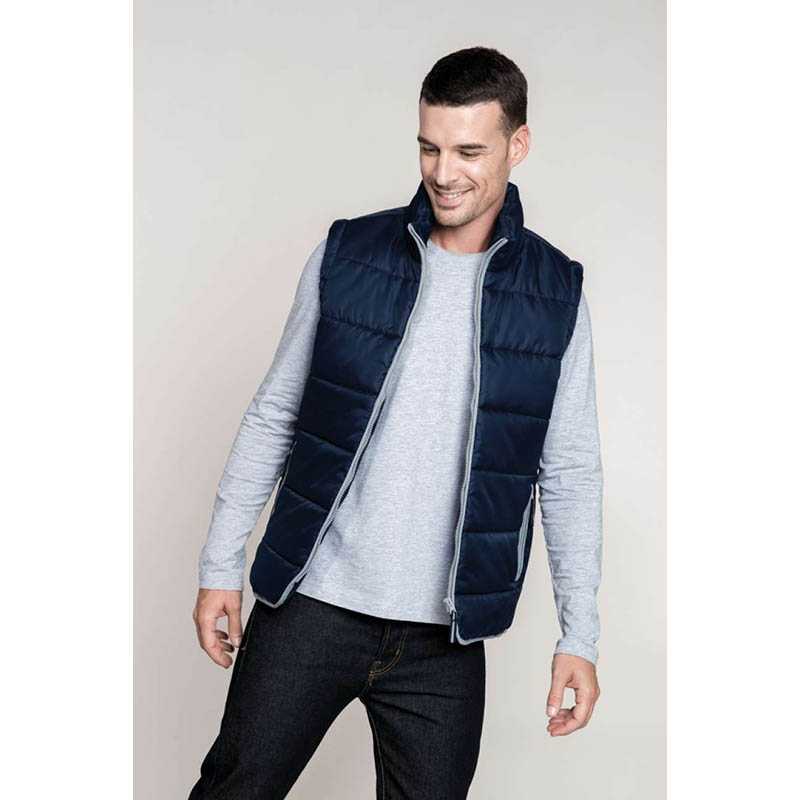 ·Outer: 100% polyester (ripstop) with PVC-coating ·Insulation: 180 gsm, 100% polyester ·Lining: 100% polyester ·Windproof and water repellent ·Stand-up collar ·Quilted body ·Deep armholes with elasticated weather protectors ·Concealed zip with storm flap and press studs ·Patch mobile phone pocket, 3 front pockets with zip, double front pockets with tear release closing flaps, inside pocket ·Longer back panel ·Decoration access: back and left chest pocket·Suitable for embroidery, transfer print. Značka : RESULT . Materiál : Polyester