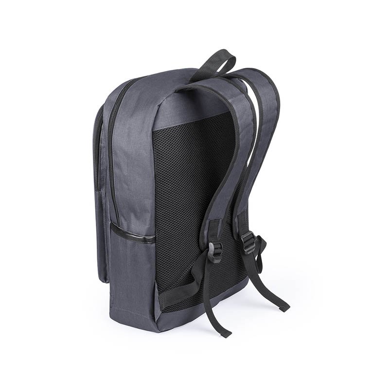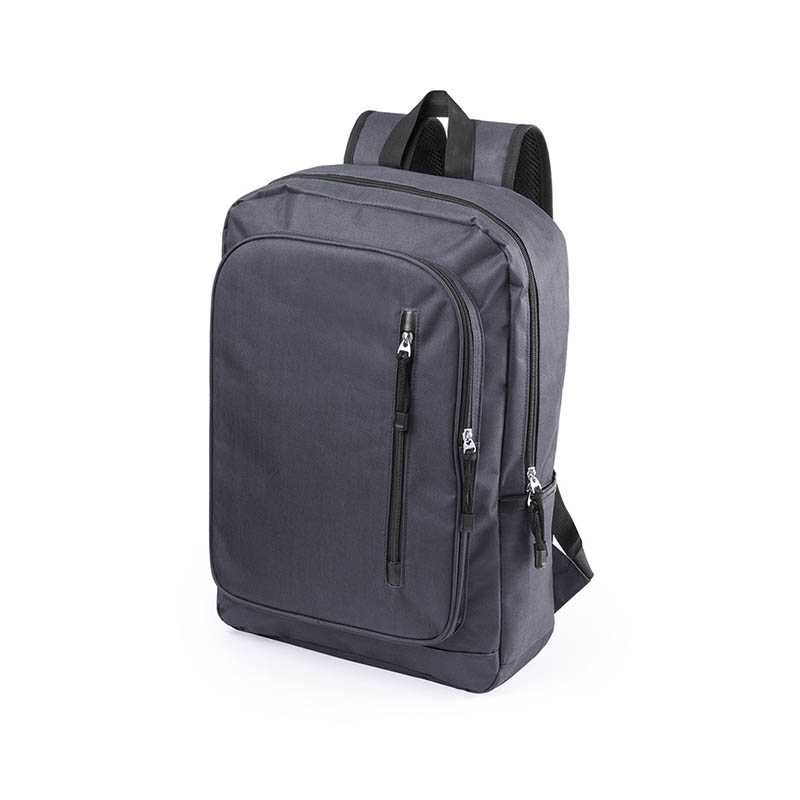 NOVINKA 2025. Resistant 600D polyester backpack with zipper closure and front pockets. In sober colors, with back and padded shoulder straps, inside padded compartment up to 15 inches laptops and shoulder straps for easy opening.