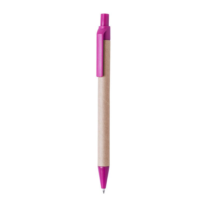 Ekologické guľôčkové pero s telom z recyklovaného kartónového papiera, s modrou náplňou. Všetky časti sú vyrobené z plastu s obsahom pšeničnej slamy.