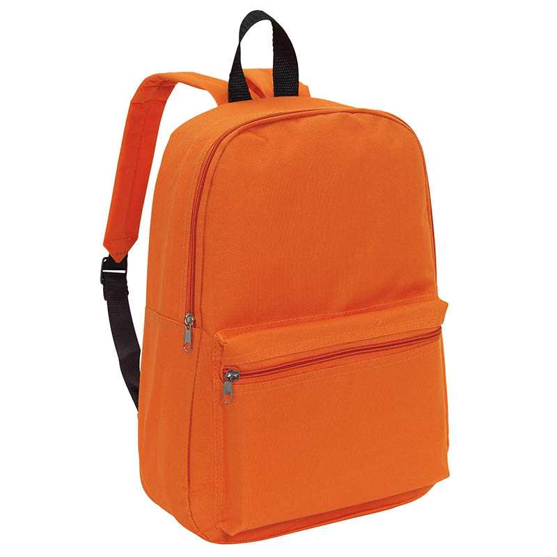 Ruksak s jedným predným vreckom a vystuženou chrbtovou časťou a ramennými popruhmi. Polyester 600D.