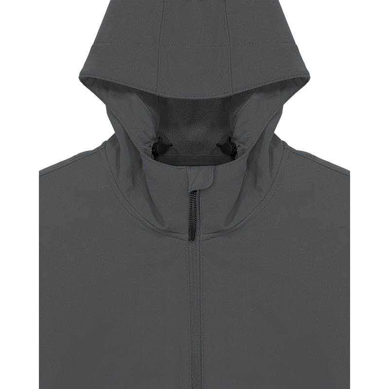 Softshell jacket 3 layers, waterproof and breathable - 97% polyester - 4% elastan - Waterproof 6000 mm/H2O - Breathability 4000 g/M2/24h - Thermic lining inside the front part - Reflective printing on front and back side - Raglan sleeves - Detachable padded-hood with drawstring - Laser cutting zip - One chest pocket with zip - Two pockets with zip - Inner wallet pocket - Elastic cuffs with velcro closing - Drawstring at the bottom