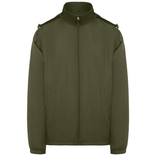 Lehká nepromokavá bunda. Vysoký límec a skládací kapuce s regulací. Podšívka z mikrofleecu. Přední zip a chránič brady. Elastické manžety. Dvě boční kapsy na zip. Vnitřní levá náprsní kapsa. Odnímatelný štítek. Nepromokavá. Odolná proti větru. Model měří 184 cm a má na sobě velikost L, modelka měří 174 cm a má na sobě velikost S.