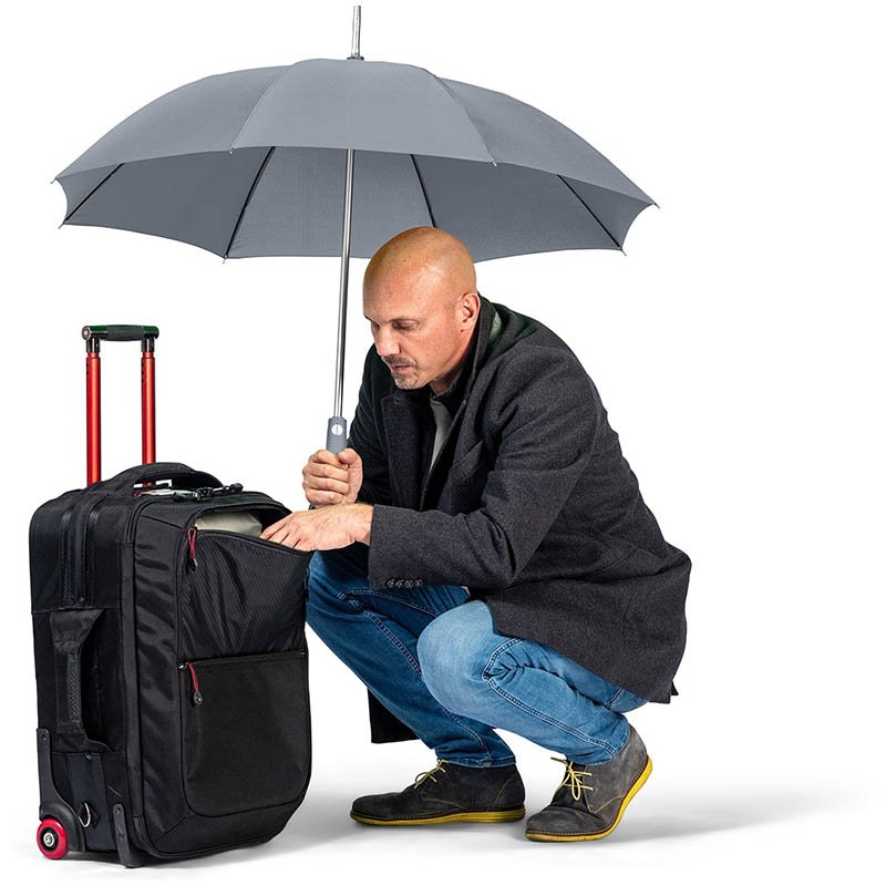 Convenient automatic function for quick opening, high-quality Windproof PLUS system for maximum frame flexibility in stormy conditions, flexible fibreglass ribs, lightweight but sturdy aluminium frame, attractive Soft-Touch handle with silver push-button and promotional labelling option. Also available as mini umbrella (art. 5565, 5460) and golf umbrella (art. 7580).