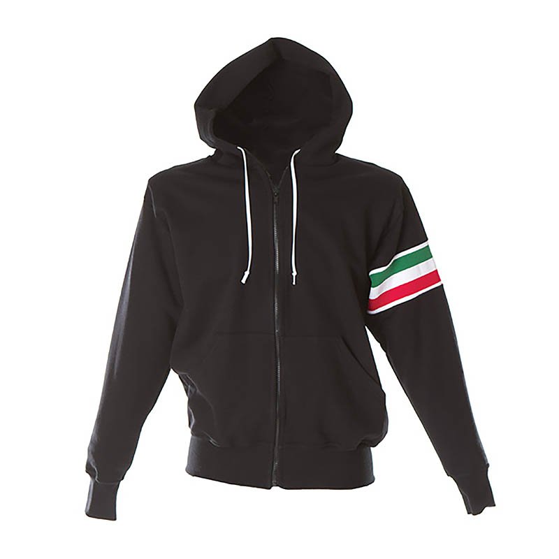 "Sweater made in Italy 100% Cotton - Hood with white ties - Full zip - Tricolor band on the arm - Pouched pockets - Ribbed cuffs and band at the waist 8 cm h - Stitching Značka : JAMES ROSS . Materiál : 100% bavlna
