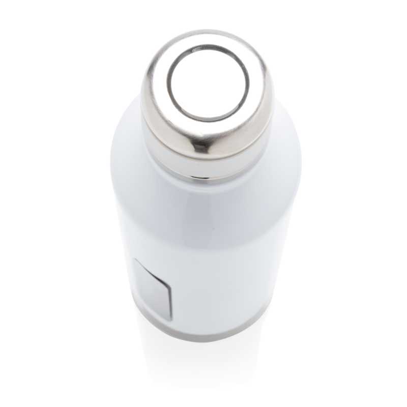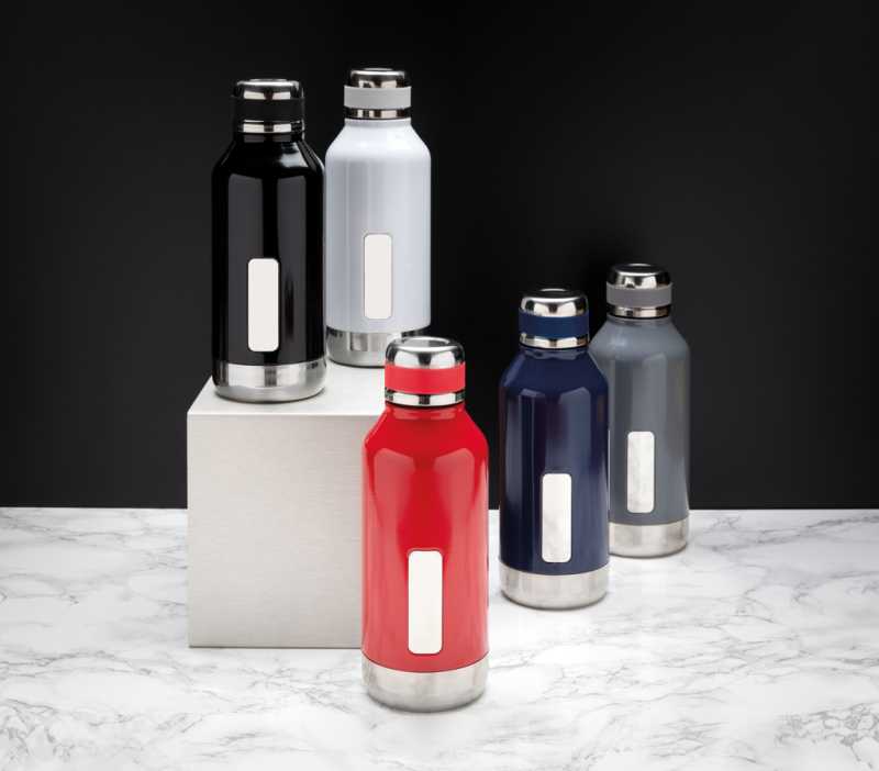 Nepriepustná termo fľaša so skrutkovacím uzáverom. Unikátna možnosť brandingu na vyhradený pliešok na prednej strane. Nehrdzavejúca oceľ 304 SS vnútri a 201 SS zvonka. Nápoj udrží až 5h horúci a až 15h studený. Objem: 500ml.