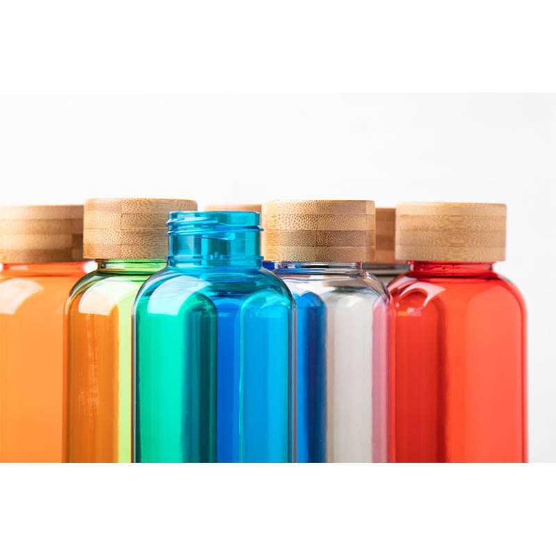 Fľaša RPET s bambusovým viečkom, 500 ml. Bez BPA. Nevhodné pre sýtené nápoje.