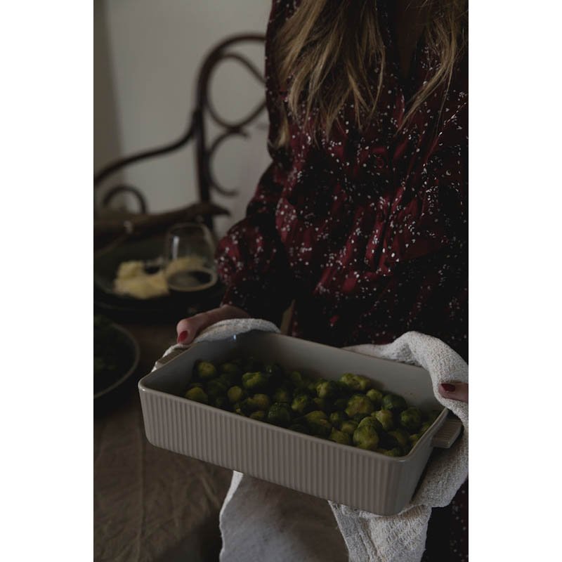 Flora is a series of ovenware provided with the characteristic Sagaform stripe. Classic, familiar and usable. Two dishes in beige made of durable stoneware. A perfect gift for someone who already has everything. Fabric: Stoneware Weight: 2300g Measurement: 36x23x7cm Packing: Giftbox
