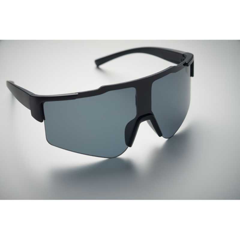 NOVINKA 2025. Sportovní sluneční brýle se zrcadlovými skly a černým rámečkem. Ochrana UV400.