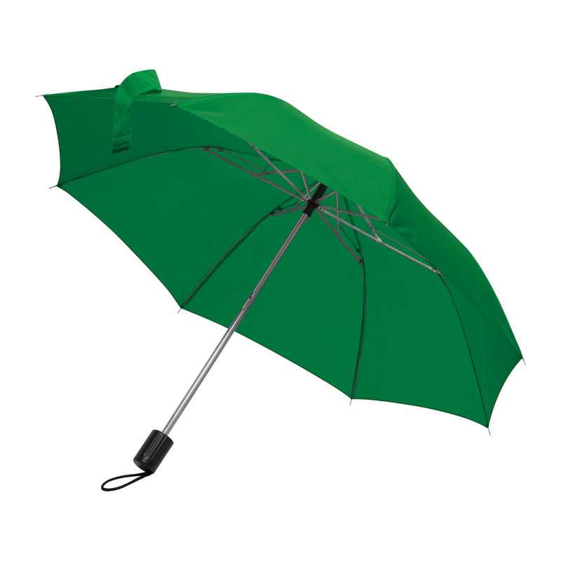 Polyester (190T), foldable umbrella with eight panels and Velcro fastening. Including nylon sleeve.