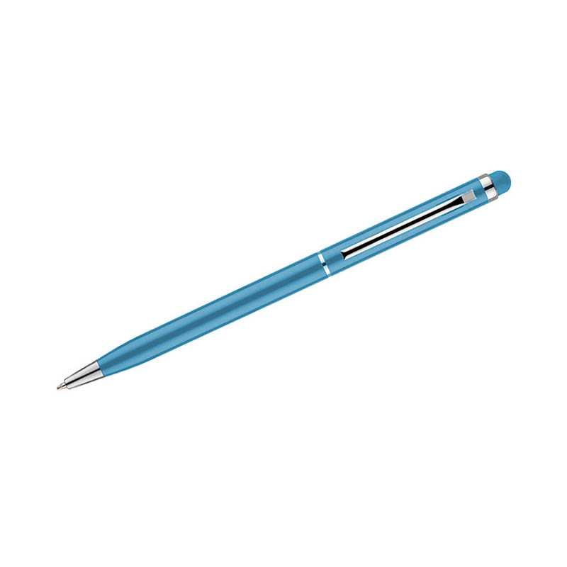 Hliníkové guľôčkové pero s dotykovým koncom na displej. Dodáva sa s modrou náplňou.