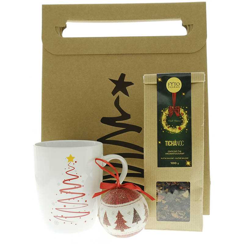 Tichá noc 100 g sypaná ovocná zmes, Vianočná ozdoba, Vianočný hrnček 390 ml. Darčeková taška 30x23x10 cm