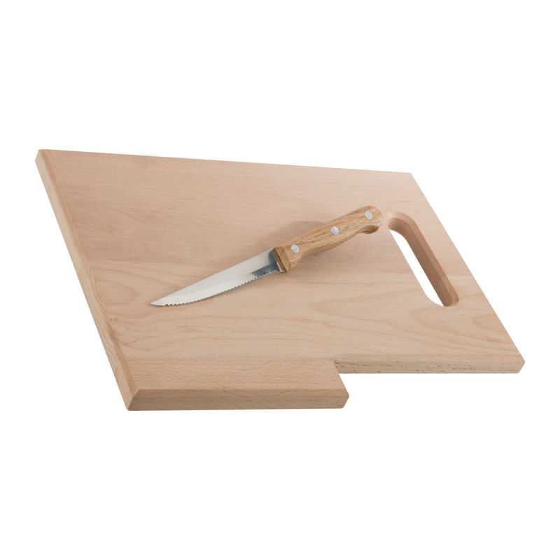 Sada sa skladá z masívnej dosky vyrobenej z bambusu a z veľkého noža z nerezu. Doska má praktickú rukoväť a dve rôzne povrchové štruktúry, aby ste si podľa potreby mohli vybrať najvhodnejšiu stranu na krájanie.