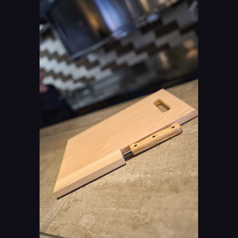 Vynikajúce duo! Vaši zákazníci budú milovať túto drevenú bukovú dosku na krájanie s integrovaným nožom, ktorou im budete vždy na očiach. Upozorňujeme, že farba gravírovania jednotlivých kusov sa môže líšit pri gravírovaní prírodných materiálov.