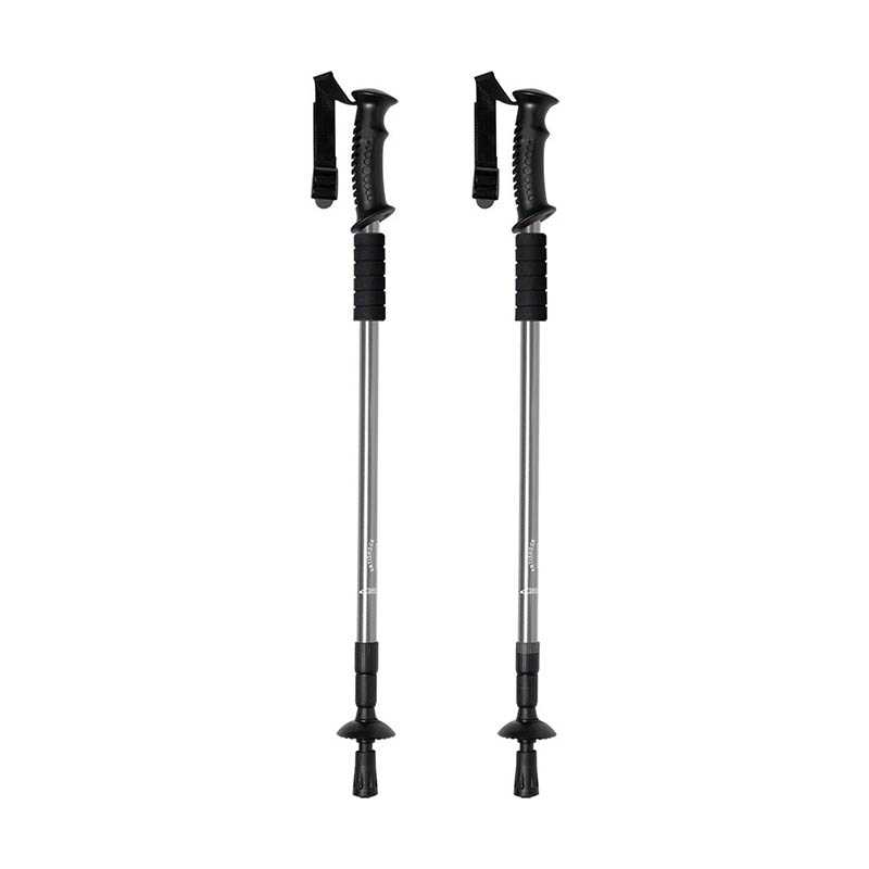 NOVINKA 2025. Set of folding poles with aluminum body, anti-shock mechanism and soft foam hand rests. Comfortable ergonomic, adjustable security belt and snow accessory. Reinforced ground contact surface. Presented in an individual bag with shoulder strap. Poles available in 3 colors.