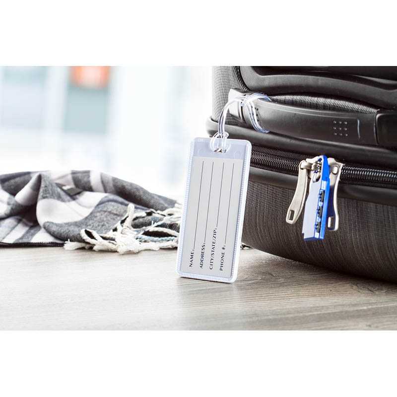 Hliníkové cestovní pouzdro k zavazadlu, se štítkem pro adresu. S páskou pro připevnění k zavazadlu.