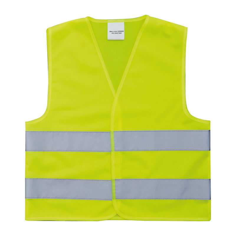 100% Polyester V-shaped neon safety jacket for children. For promotional use only.