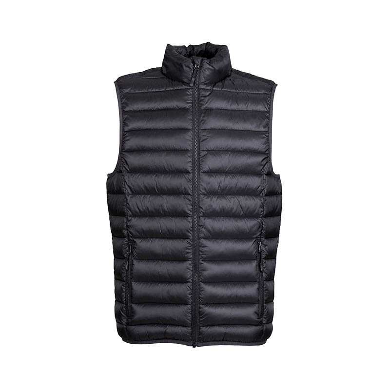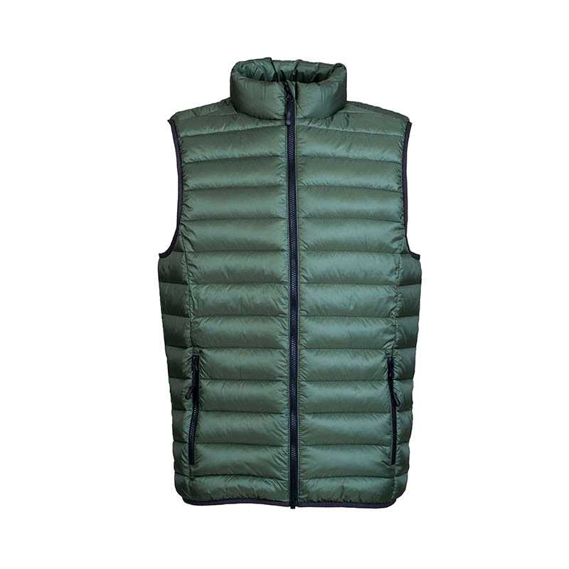 Kvalita.Vonkajšia tkanina a podšívka: 100 % polyester.Polstrovanie: 100 % polyesterové páperie.Štýl.Predné zapínanie a bočné vrecká s nylonovým zipsom tón v tóne.Kovové bežce tón v tóne s čiernymi efektnými pútkami zipsov.Vysoký golier.Elastické šikmé previazanie tón v tóne na prieramkoch a v spodnej časti.Úložná taška.