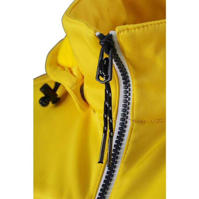 3vrstvový softshell s membránou, ľakho vypasovaný strih, celozapínací reverzný špirálový zips s krytkou brady, odnimateľná kapucňa, lemy rukávov nastaviteľné suchým zipsom, dolný lem na stiahnutie elastickou šnúrkou, vrecká s reverzným špirálovým zipsom,