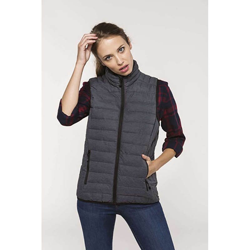 Feminine fitted design , Full zip opening , Padded hood with feather touch, removable with a zip , 2 side pockets , Adjustable bottom hem (with draw cord and stoppers), lining and accessories in matching colours, Easy access for decoration via an invisible zip in the middle of the back, Large back area without stitching for easy decoration, Trendy down feminine bodywarmer, Quality, Out: 100% waterproof taslan full-dull nylon with soft-feel coating, In: 100% padded Taffeta® polyester lining with feather touch, Professional informations, 1 pc/pack & 10 pcs/carton. BS31 Značka : B&C . Materiál : 100% nylon