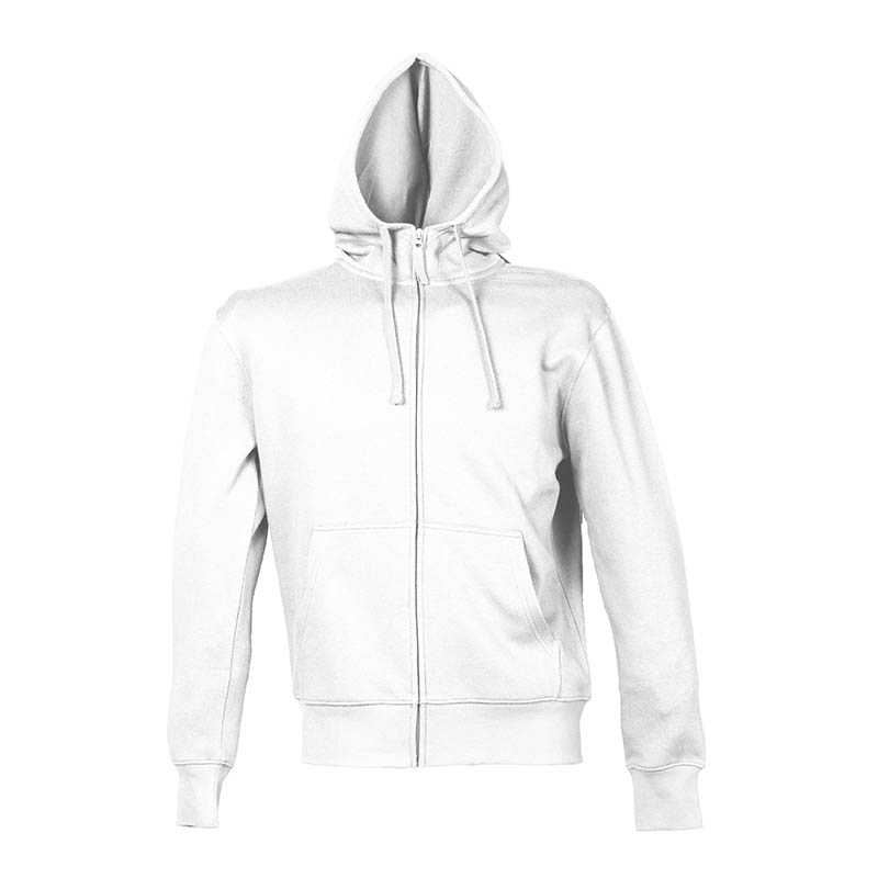 80% cotton - 20% polyester sweater in french terry - Not internally padded - Lined hood - High collar - Covered full zip - Pouch pocket - Ribbed cuffs - Ribbed band at the waist - Reinforced tape inside collar - Stiching