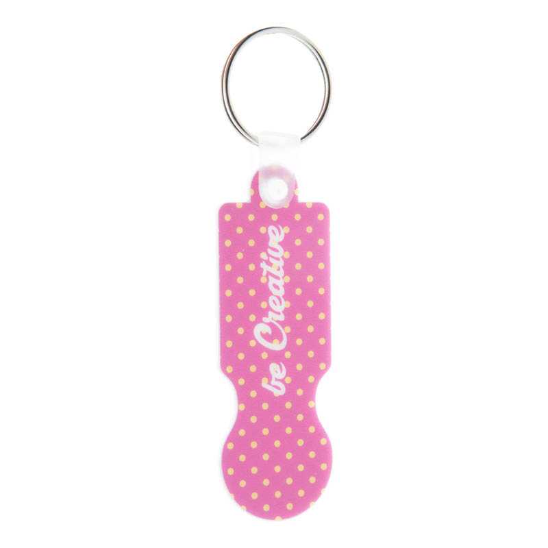 Plastový prívesok na kľúče s koncovkou do nákupného vozíka s plnofarebnou potlačou. Cena zahŕňa UV LED tlač na jednej strane, nezahŕňa tlačovú prípravu. Min. mn.: 200 ks.