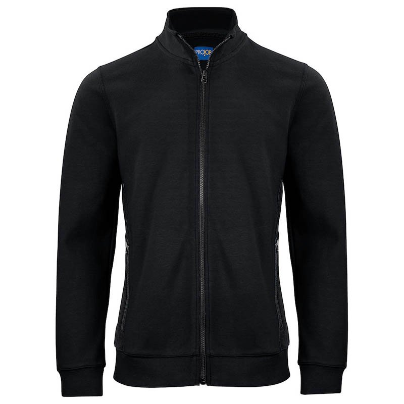 Sweatshirt with full zip up to collar at front. Rib-knitted hem and cuffs. Contrast color at sides. Side pockets with zip closure. Color black/yellow-9910 has got contrasts in fluorescen