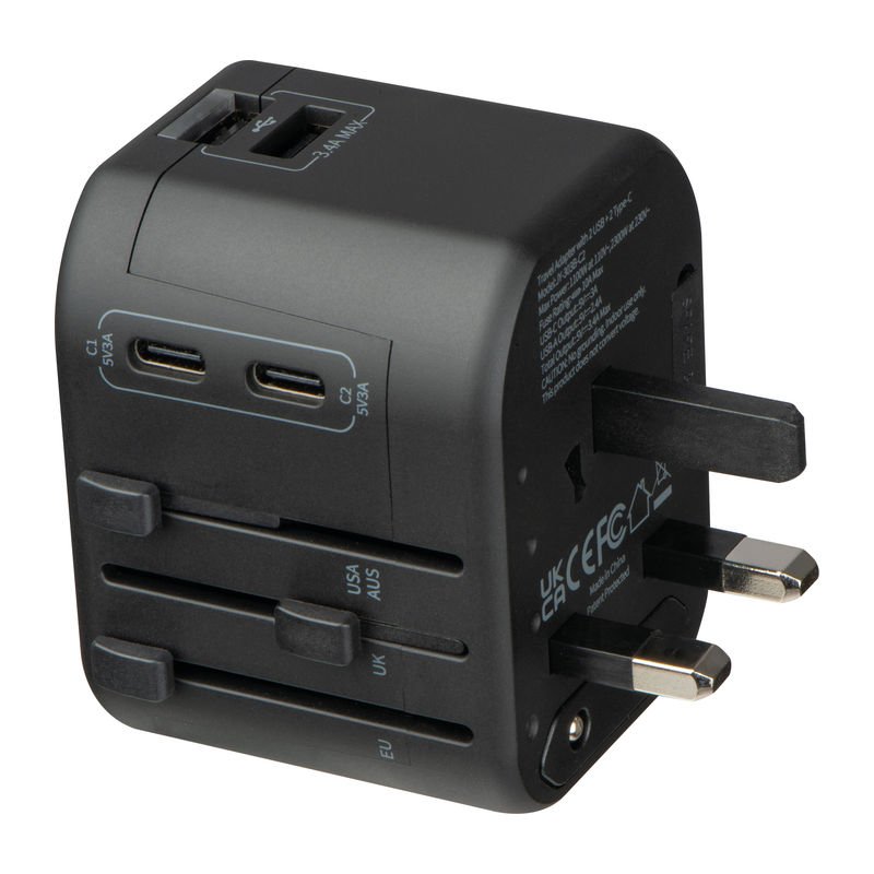 Inovativní 3 kolíková cestovní zásuvka, která může být použita ve více než 100 zemích. Funguje jako cestovní zásuvka a 12W USB nabíječka pro cestující z Evropy (Schuko a Euro standardy). 3 kolíková, uzemněná. Splňuje veškeré mezinárodní bezpečnostní stand